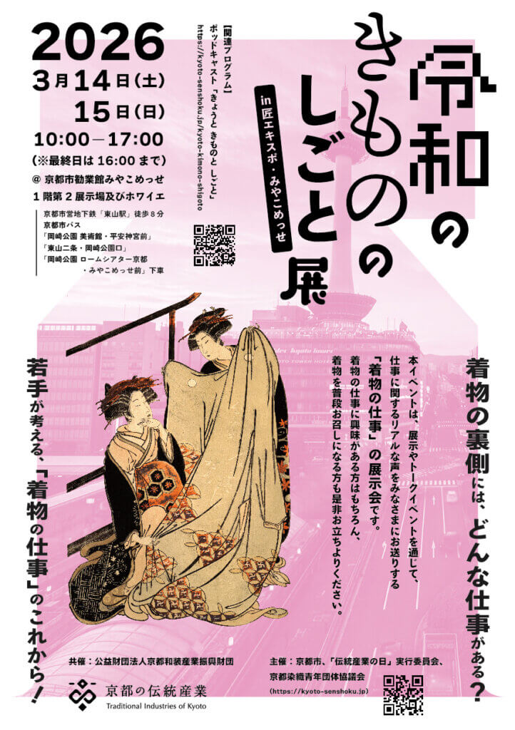 京都染織青年団体協議会は、2026年3月14日(土)15日(日)の2日間、昨年に引き続き「令和のきものの仕事展」を開催いたします。